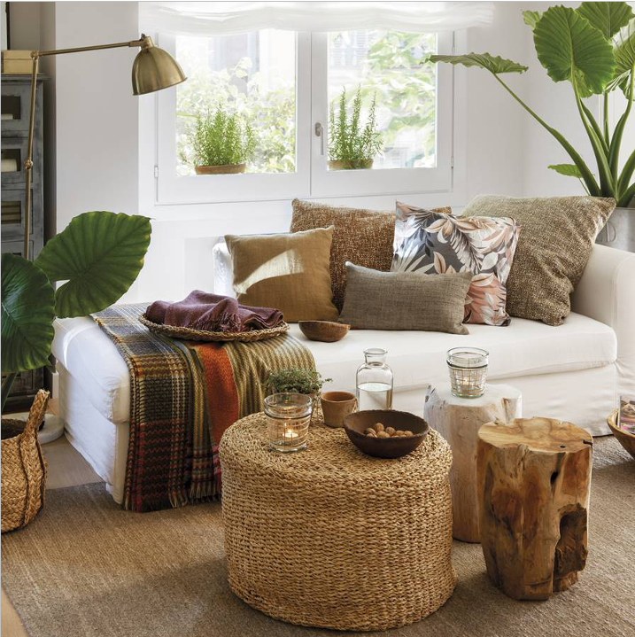 Otro de los estilos más empleados, favoritos por hombres y mujeres es decorar pensando en la naturaleza. La sensación de descanso y tranquilidad es indiscutible sobre todo cuando te rodean muchos plantas. Para lograr un look similar en tu sala puedes usar alfombras con pelaje artificial, mesas con madera rústica -como el tronco- y emplear colores grises, ¡así crearás una zona perfecta para el descanso!