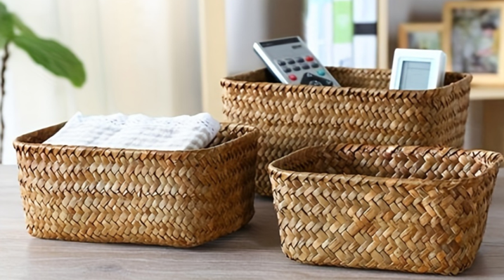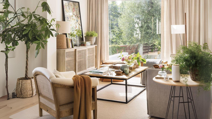 De la mano de incorporar plantas a tu decoración, una gran opción es apostar por elementos naturales, conchas marinas, cestos de mimbre o capazos para almacenar revistas.