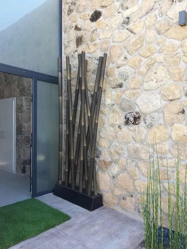 Aunque el uso de bambú como parte de la decoración puede tener una dimensión práctica -ya sea en forma de muebles, lámparas o similares- también puedes optar por incorporarlo, sencillamente, por su carácter decorativo. En este sentido, un biombo natural o cortina de bambú puede ser todo lo que necesitas para la decoración de la entrada, ya sea desde el exterior o en el propio recibidor si el espacio lo permite.