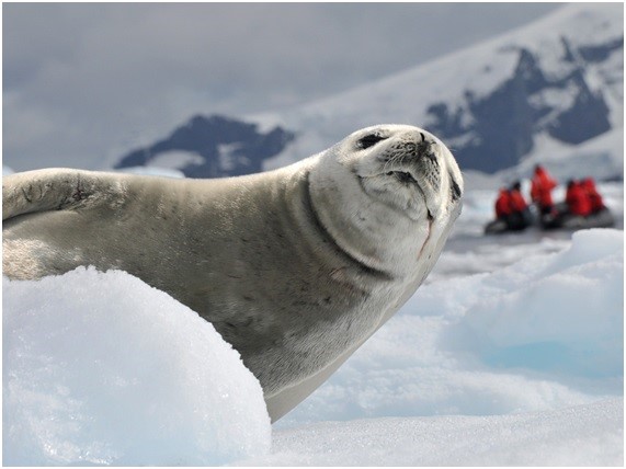 • Foca cangrejera: La foca cangrejera (Lobodon carcinophagus) pasa la mayor parte de su vida en los hielos antárticos. Aunque son capaces de desplazarse grandes distancias en busca del krill, su alimento principal (se sumergen en las zonas más profundas para conseguirlo). Con un peso de entre 200 y 300 kilos y una longitud de hasta 2,5 metros, es capaz de nadar a más de 25 km/h. Y se cree que habitan la Antártida desde hace más de 23 millones de años. Su esperanza media de vida en la naturaleza está en los 20 años.