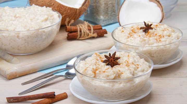 - Agrega la leche de coco, la canela, la pimenta de Jamaica y los clavos. Mezcla bien con la ayuda de una cuchara de palo. Cuando suelte el primer hervor baja el fuego a medio bajo y cuece por 10 minutos.