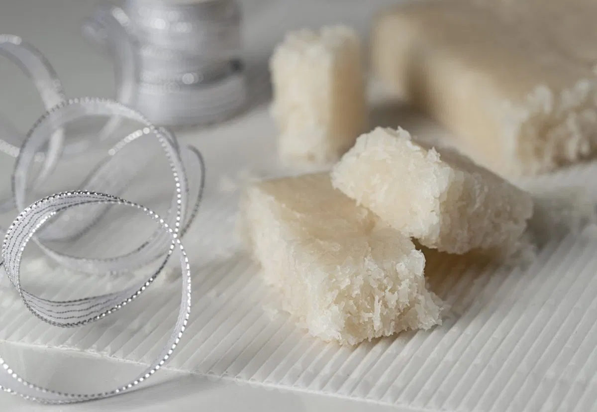 - Sacamos el molde de la nevera y desmoldamos el turrón con cuidado. Si hemos utilizado papel vegetal, este paso será mucho más sencillo. Asegúrate de hacerlo con paciencia para no romper el turrón.